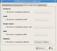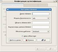 Во вкладке аутентификация включаем поддержку Winbind.