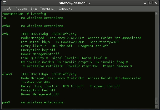1) Карта установлена на канал, отличный от канала точки доступа. Решение: используйте iwconfig и убедитесь, что карта настроена на тот же канал, что и точка доступа.
