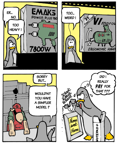 Продвинутый текстовый редактор — кошмар для случайного пользователя. Если его удается в конце концов закрыть, то вздыхаешь с облегчением и твердой уверенностью, что больше не будешь запускать эту программу ни разу в жизни.