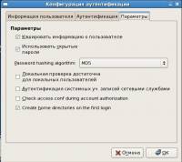 Во вкладке параметры включаем: -кэшировать информацию о пользователе; -использовать скрытые пароли; -create home directories on the first login.
