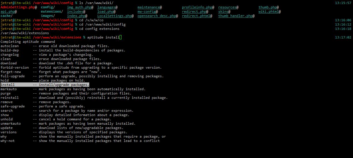 • Автодополнение работает не только с названиями команд, но и (в огромном количестве случаев) с их ключами, давая по-ходу краткую справку по типу –help